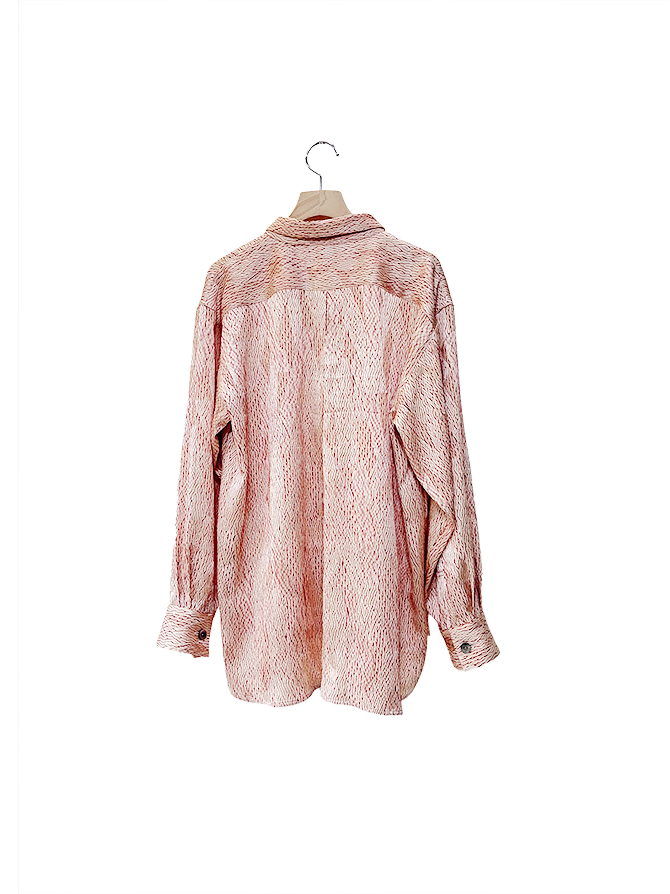 シャツカラーブラウス 絞り着物 / 着物リメイク / シルク / 赤い絞りが美しいブラウス