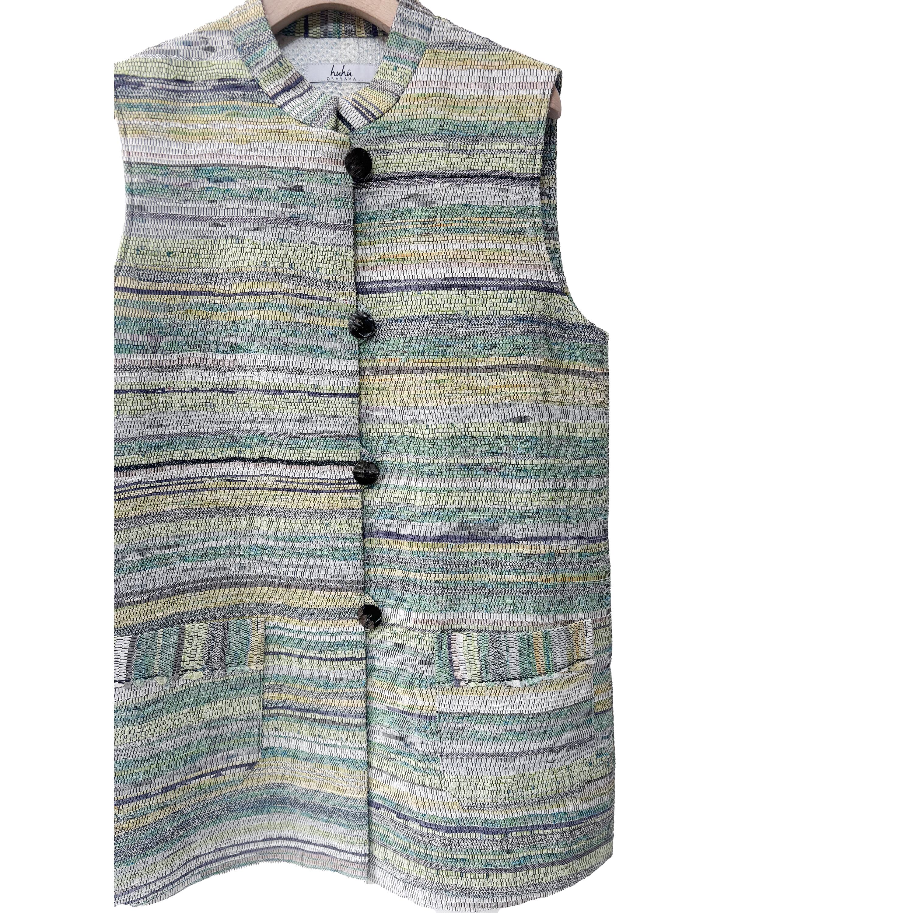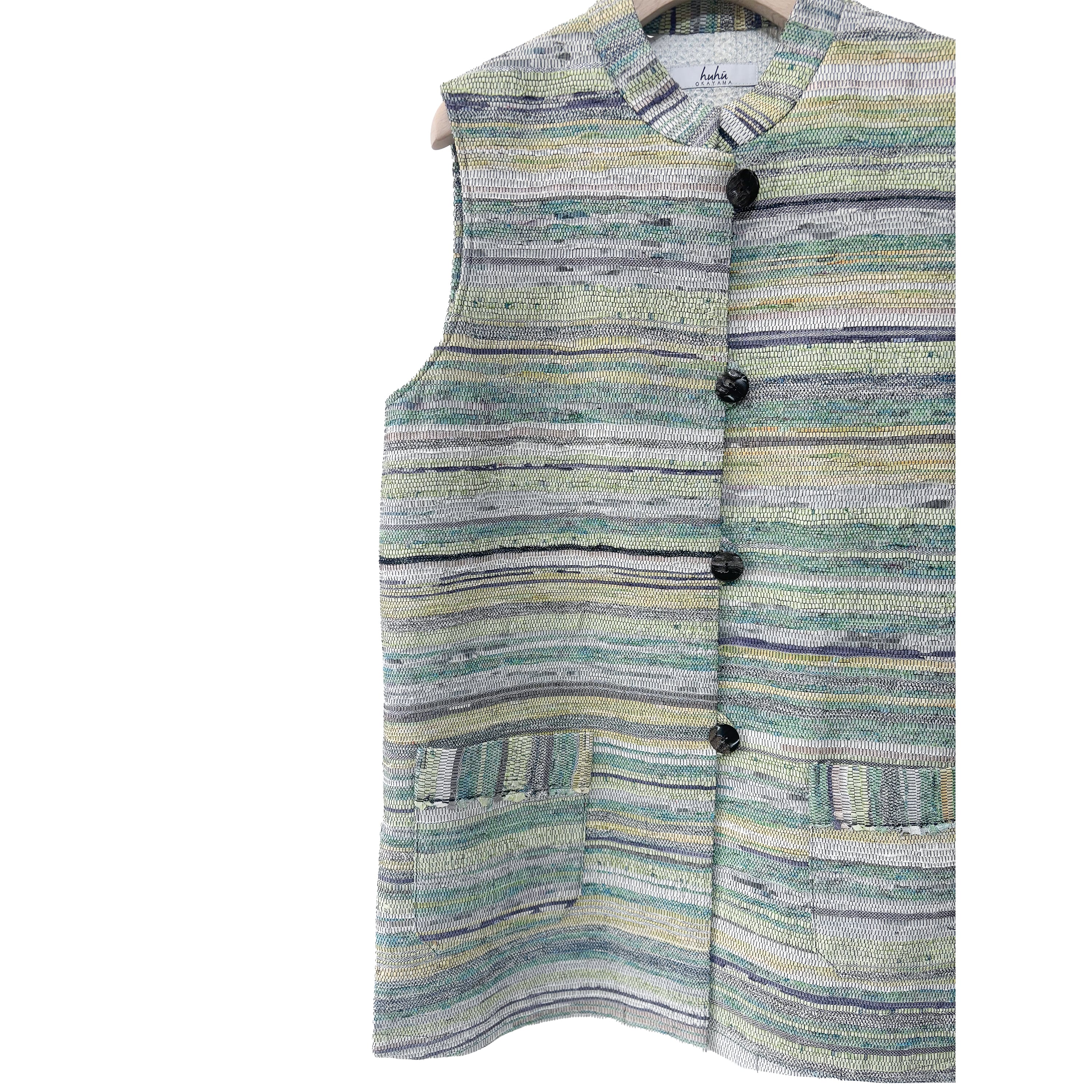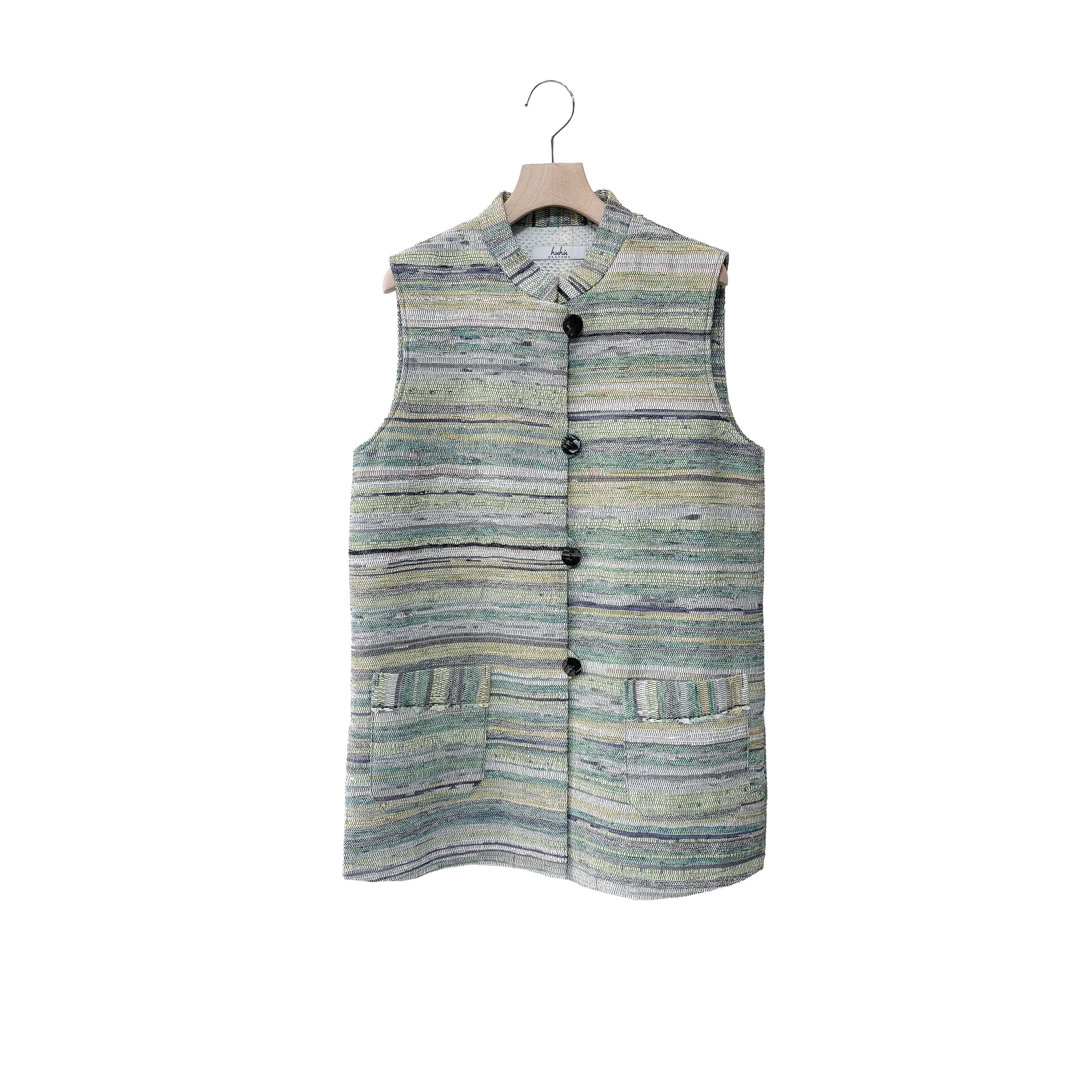 Sakiori vest / 現品かぎり手織りの裂織ベスト スタンドカラーベスト